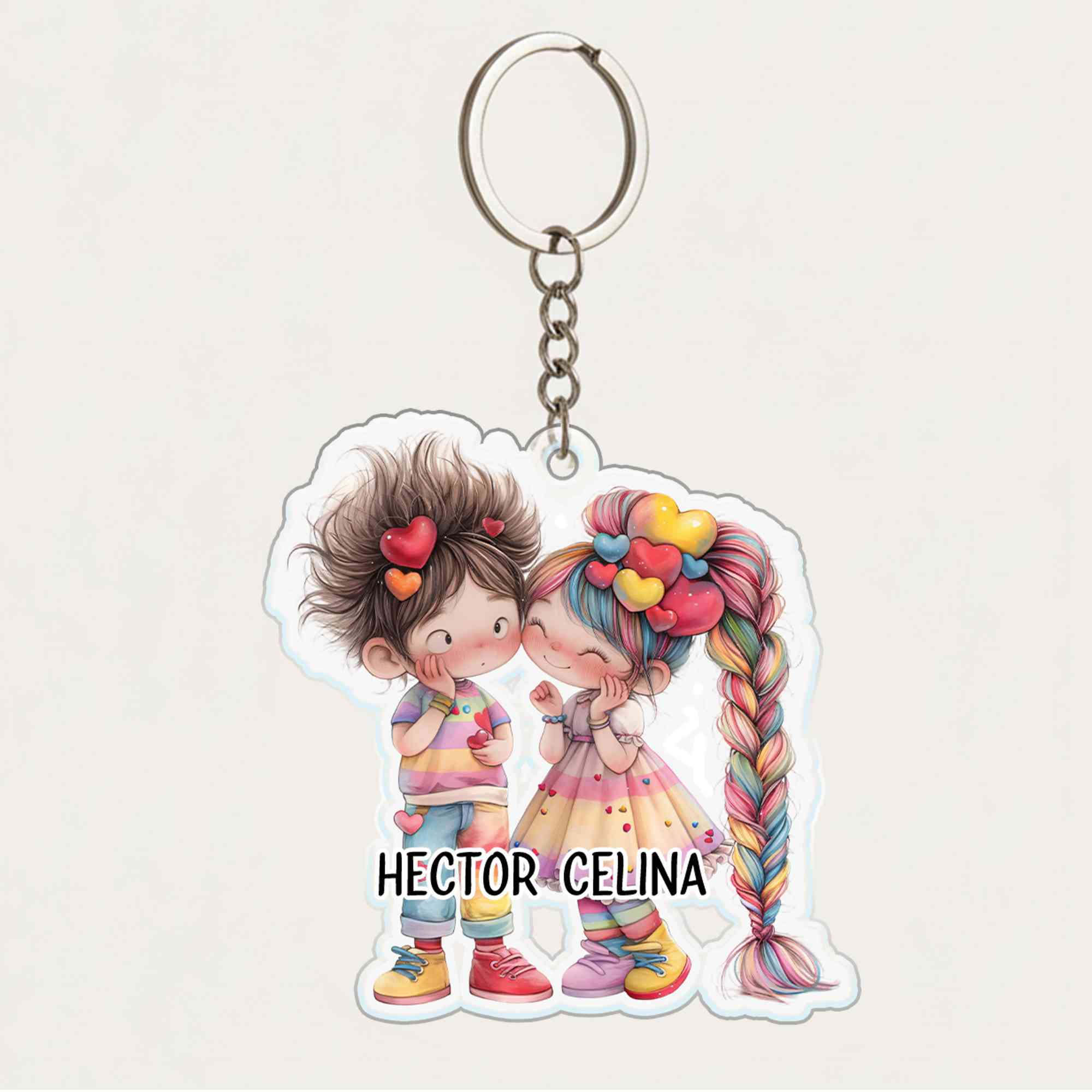 Personalized Quirky Cartoon Couple Love Heart Keychain with Names, Acrylic Keyring, Bag Charm, Anniversary/Valentine's Day Gift for Her/Him/Couple